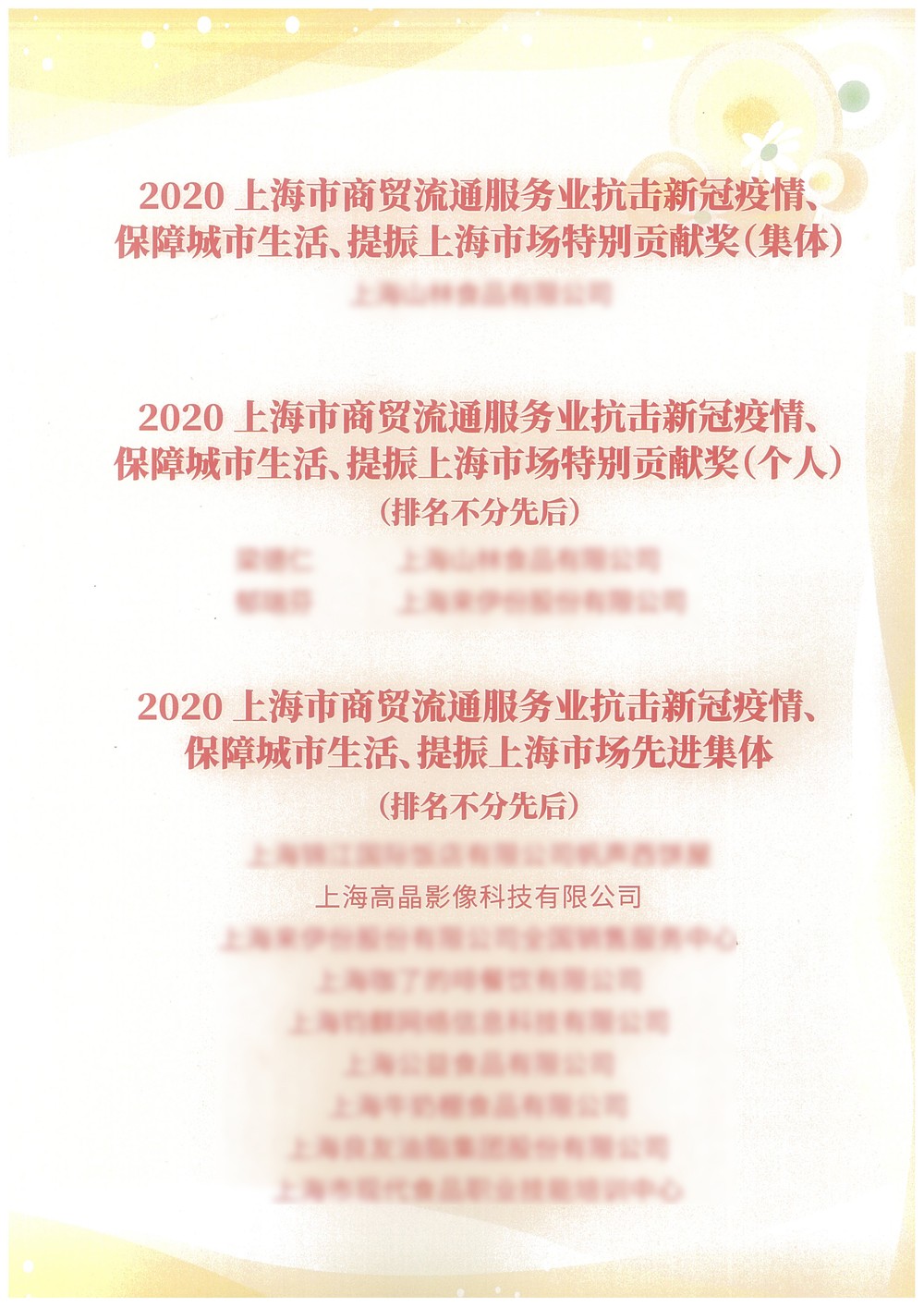 高晶獲評(píng)2020上海市商貿(mào)流通服務(wù)業(yè)抗擊新冠疫情、保障城市生活、提振上海市場(chǎng)先進(jìn)